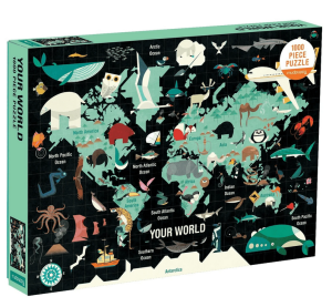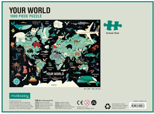 Sestavte toto 1000 dílkové rodinné puzzle od Mudpuppy a odhalte „Váš svět“. Dokončené puzzle obsahuje mnoho zvířat na mapě světa. Puzzle je zabaleno v robustní krabici. Hlavní vlastnosti: Obsahuje 1000 dílkůPotištěno netoxickými inkoustyPrémiová kvalita puzzleJednotlivé dílky do sebe přesně pasujíRozvíjí logické myšlení a motoriku