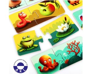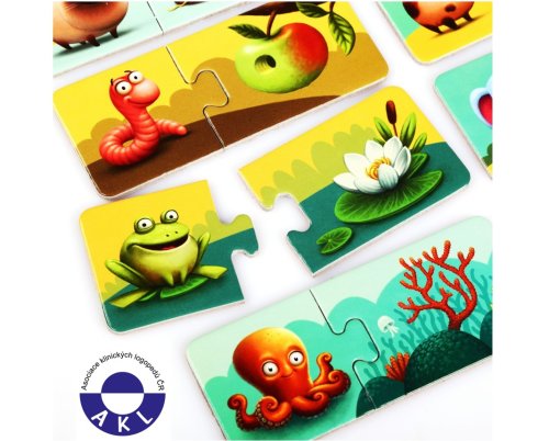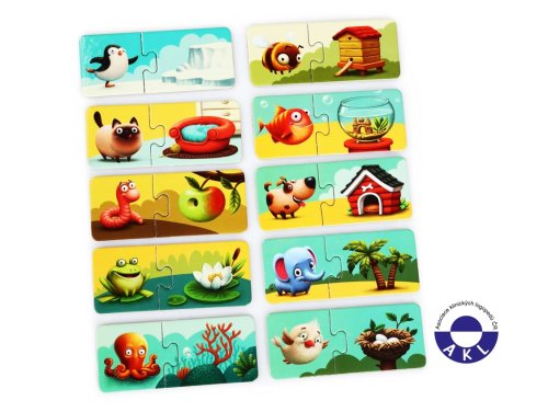 Puzzlika, nová značka puzzlů s moderním kreativním designem, přináší pro malé děti aktivní učení formou zábavné hry. Poznáte kde které zvířátko bydlí? V krabičce naleznete 20 velkých pevných puzzlů, tvořících 10 samostatných dvojic kartiček, které spolu tematicky souvisejí. Jedna polovina kartiček obsahuje ilustrace jednotlivých zvířátek a na druhé polovině kartiček je vyobrazeno jejich nejčastější obydlí. Cílem je vytvořit správné kombinace a nasbírat co nejvíce párů. Naučné puzzle je skvělá hra pro malé děti, která u nich rozvíjí logické myšlení, představivost, kreativitu, jemnou motoriku a různé poznávací znalosti. Puzzle jsou vyrobeny z velice pevného vícevrstvého kartonu s lesklým povrchem. Karton byl vyroben z kvalitního, ekologicky pěstovaného dřeva. Puzzle je možné otřít vlhkým hadříkem. Nevhodné pro děti do 2 let. Vyrobeno v Evropě.Věk 2+