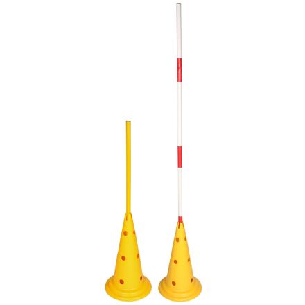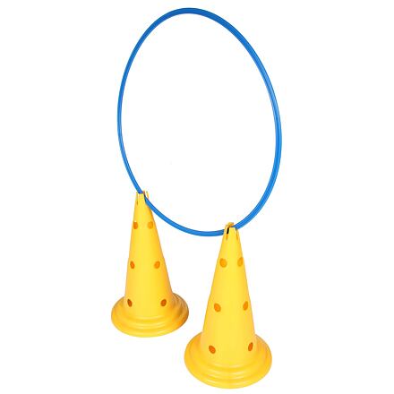 Značkovací kužel ve dvou barvách ( oranžová a žlutá) s výškou 52 cm pro vymezení hracího hřiště nebo pro vytvoření slalomové a překážkové tréninkové dráhy. Víceúčelový kužel Multi je na rozdíl od klasických modelů velmi variabilní a má univerzální využití. V jeho plášti je celkem 12 otvorů s průměrem 3 cm umístěných ve třech výškách. Na špičce kuželu je křížový výřez. Do otvorů je možné zasunout v libovolné kombinaci překážkové tyče a do výřezu na vrcholu umístit další tréninkové pomůcky s menším průměrem (např. kruh). Kužel Multi doporučujeme zkombinovat s plastovými tyčkami P1, P2, P3, teleskopickou tyčí P4 nebo HP překážkovým kruhem. Parametry: -výška 52 cm -otvory ve výškách 8, 23, 38 cm -základna kužele: průměr 29,5 cm -hmotnost: 0,5 kg Materiál: plast