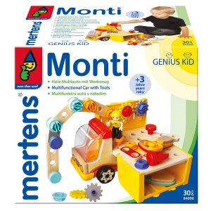 "Multifunční dřevěné auto s řidičem a plastovými doplňky. Poslouží nejen k zábavě vašeho dítěte, ale po otevření také jako pomůcka k procvičení motorických schopností a trénování intelektu. Obsahuje nářadí a spojovací materiál pro malé kutily. "