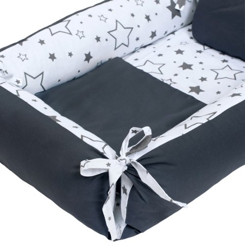 Multifunkční hnízdečko s polštářkem a peřinkou pro miminka New Baby. Hnízdečko je oboustranné, může se používat z vnější i vnitřní strany. Oboustranné hnízdečko s mantinely, vytvoří miminku chráněný prostor a je v něm zcela v bezpečí. Mantinely také zabraní překulení miminka mimo hnízdečko. Součástí hnízdečka je polštářek a peřinka. Hnízdečko má mnoho využití, lze používat v postýlce, v kočárku, na pohovce, na zemi jako hrací bazének s balónky i jako mantinel do postýlky. Rozměry: cca 57x90 cm, vnitřní rozměry: cca 47x75 cm. Peřinka: Rozměry: 65x47 cm. Výška postranních mantinelů: 10cm. Složení:100% bavlna, výplň: antialergické vlákno. Produkt české značky.