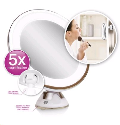 Multifunkční LED kosmetické zrcátko ideální pro líčení a přesné kosmetické úpravy. Rychloupínací a uvolňovací přísavná základna znamená, že ho lze použít na toaletním stolku nebo připevnit ve výšce očí k jakémukoli běžnému zrcadlu nebo hladkému povrchu.