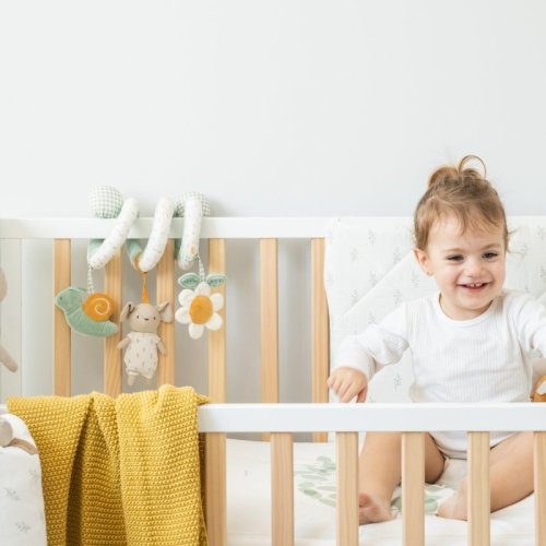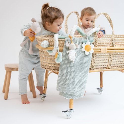 díky snadnému upevňovacímu systému ji lze omotat na postýlku, madlo kočárku apod.