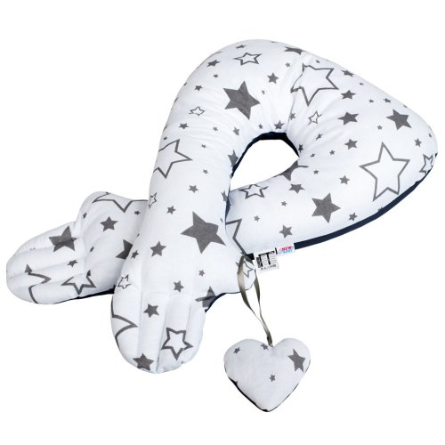 Multifunkční stabilizační polštářek New Baby. Jeho speciální tvar se přizpůsobí poloze dítěte sedícího, nebo ležícího v autosedačce, kočárku, postýlce, hnízdečku nebo také v letadle a zajistí mu potřebnou oporu při spánku. Polštářek s kvalitním bavlněným povlakem je vhodný i pro předčasně narozené děti. Ruce polštářku krásně obejmou miminko v postýlce a díky němu bude mít ještě větší pocit jistoty a bezpečí. Součástí balení je i bavlněný přívěšek ve tvaru srdíčka. Složení: 100% bavlna, 100% polyester, výplň: antialergické vlákno. Materiál odpovídá normě Oeko-Tex. Rozměry: vnější obvod cca 160 cm. Produkt české značky.