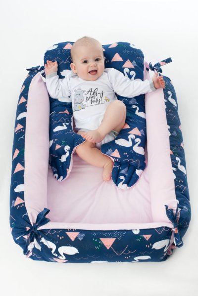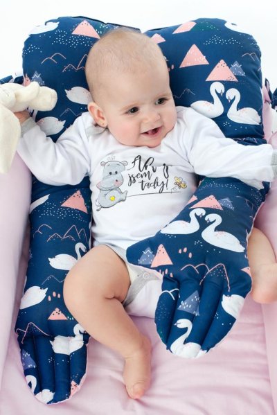 Multifunkční stabilizační polštářek New Baby. Jeho speciální tvar se přizpůsobí poloze dítěte sedícího, nebo ležícího v autosedačce, kočárku, postýlce, hnízdečku nebo také v letadle a zajistí mu potřebnou oporu při spánku. Polštářek s kvalitním bavlněným povlakem je vhodný i pro předčasně narozené děti. Ruce polštářku krásně obejmou miminko v postýlce a díky němu bude mít ještě větší pocit jistoty a bezpečí. Součástí balení je i bavlněný přívěšek ve tvaru srdíčka. Složení: 100% bavlna, 100% polyester, výplň: antialergické vlákno. Materiál odpovídá normě Oeko-Tex. Rozměry: vnější obvod cca 160 cm. Produkt české značky.