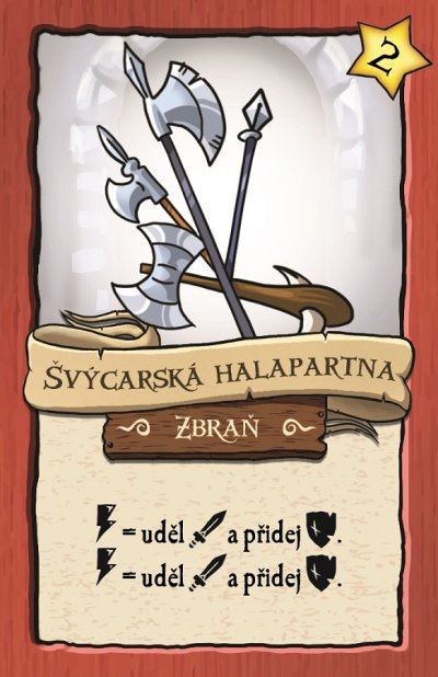 Obsah balení: 60 karet kořisti, 60 karet hrozeb, 62 žetonů zlaťáků, 35 žetonů zranění, 18 žetonů hanby, 16 žetonů hrozeb, 12 žetonů lektvarů, 5 ukazatelů úrovně, 5 ukazatelů slávy, 1 plán podzemí
