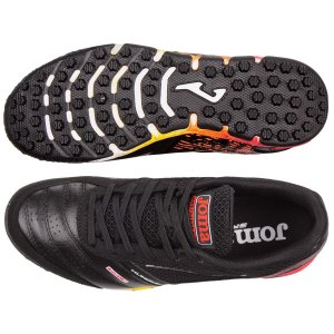 Turfy JOMA Mundial 2401 jsou kopačky s výrazným vzorkem na podrážce, která tak lépe přilne k povrchu a pomáhá fotbalistovi udržovat optimální stabilitu. Tento model na umělé povrchy je navržený pro rekreační i pravidelné hráče. Svršek vyrobený z kombinací různých materiálů s prodyšnou textilií s perforací VTS, která umožňuje cirkulaci vzduchu a zajišťuje tak správnou ventilaci. Přední část, kde dochází k největšímu kontaktu s míčem, je vyrobena z vysoce kvalitní kůže, která nabízí dobrý kontakt s míčem. Phylonová mezipodešev poskytuje větší stabilitu a odpružení. Podešev je vyrobená z vysoce kvalitní pryže s vynikající odolností proti oděru. K tomu byl použit systém DURABILITY, který prodlužuje životnost boty.