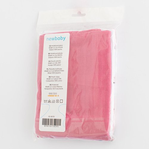 Mušelínové dětské pleny New Baby ve zvýhodněné sadě. Vysoce kvalitní plenky s výhodnou gramáží. Dobře absorbují vlhkost, umožňují dětské pokožce dýchat a nedráždí ji. Balení obsahuje 3 ks. Dvě plenky jednobarevné a jedna s obrázkem. Vhodně zvolené barvy a obrázky pro holčičky. Lehká konstrukce umožňuje mušelínu „dýchat“ a zajišťuje dostatečnou cirkulaci vzduchu, čímž snižuje riziko přehřátí. Tato vlastnost pomáhá udržet vaše miminko v pohodlí, bezpečí a rodiče v klidu. Mušelín je velmi odolný, a to natolik, že snadno zvládne opakované praní a časem je lehčí a měkčí. Mušelínová plena je ideální na léto, kdy může nahradit přikrývku v postýlce nebo kočárku. Multifunkční výrobek, který se vyplatí mít ve své výbavě. Rozměr: 60x80 cm. Složení: 100% bavlna. Gramáž materiálu: 110g/m2. Certifikát: OEKO-TEX STANDARD 100.