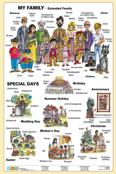 Určeno především pro začátečníky na usnadnění a zvládnutí angličtiny hravým způsobem, ale i na zopakování učiva a jeho procvičování. Konverzační naučná tabulka má zábavnou formou rozvíjet řečové dovednosti, zvyšovat úroveň vyjadřování, podporovat aktivitu, představivost a tvůrčí přístup. Podstatnou složku obsahu naučné tabulky Moje rodina tvoří poutavé a zároveň zábavné ilustrace, které rozšiřují slovní zásobu přibližně o 100 nových slovíček. Oboustranný produkt, zadní strana je pracovní verzí přední.