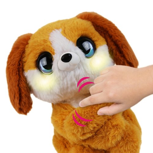 Interaktivní plyšový pejsek Ferda z řady My Fuzzy Friends Mazlivá zvířátka reaguje na dotek a interakci více než 50 různými zvukovými a pohybovými reakcemi. Jeho plyšové tlapky mají speciální klouby, které je možné roztáhnout, pejsek pak sám obejme dětskou paži a přitulí se k ní. Pejska je možné hladit, lechtat, nakrmit, utřít mu nos nebo třeba uložit ke spánku. Svoje potřeby vyjádří rozsvícením tvářiček, jejichž barevností vyjadřuje pejsek některé své potřeby společně se specifickým zvukem. Výrobek vyžaduje 3× AAA baterie, jsou součástí balení. Pro děti od 4let.