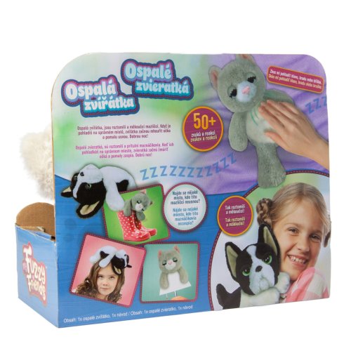 Roztomilé plyšové zvířátko My Fuzzy Friends Ospalá kočička. Ospalá zvířátka, jsou roztomilí a měkoučcí mazlíčci. Když je pohladíš na správném místě, zvířátka začnou mhouřit očka a pomalu usnou. Zvířátko vydává více jak 50 zvuků a reakcí. Výrobek vyžaduje 3× AAA, které jsou součástí balení. Výrobek obsahuje 1 plyšáka, 1 návod. Vhodné pro děti od 4 let.