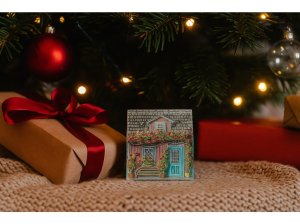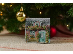 Mýdlo je uloženo v originální papírové krabičce připomínající malý domek, kterou zdobí ručně malovaný motiv. Díky tomu je každý kus jedinečný a působí jako malý voňavý dárek od srdce.