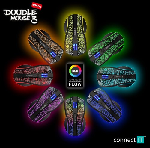 Profesionální bezdrátová herní myš DOODLE 3 od značky Connect IT je ideální pro všechny vášnivé hráče počítačových her. Duhové podsvícení těla i posuvného kolečka zaujme už na první pohled. Pokud chcete kvalitní a vizuálně atraktivní myš, je pro vás tento model ten pravý.