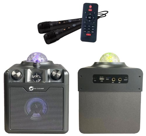 Přenosný reproduktor N-GEAR Disco Star 710SG, který vám zprostředkuje špičkové ozvučení na každé párty. Disponuje celkovým výkonem 50 W a zabudovanou disco koulí, takže o stylové audio rozhodně nebude nouze. Díky kompaktním rozměrům a nízké váze se snadno přenáší a můžete jej vzít s sebou kamkoli. Zabudovaná baterie zvládne až 5 hodin provozu. Přehrávání hudby umožňuje jak ze smartphonů, tabletů nebo notebooků skrze bezdrátovou technologii Bluetooth 5.0, tak z paměťových karet microSD. Součástí balení je také dvojice mikrofonů, se kterými si užijete opravdovou karaoke párty.