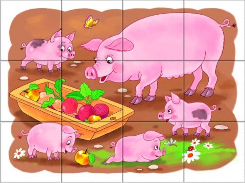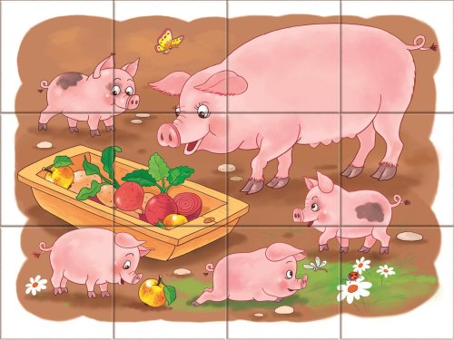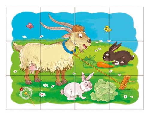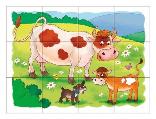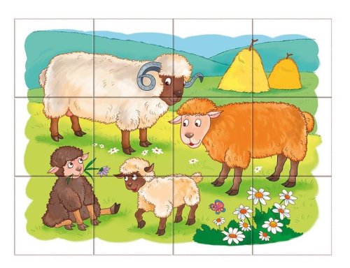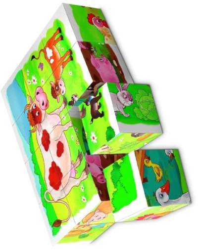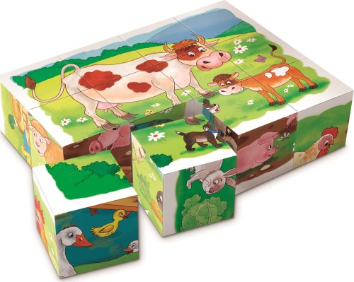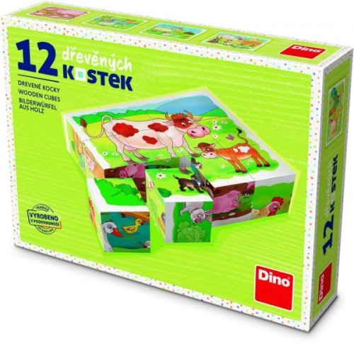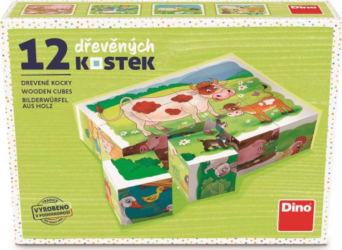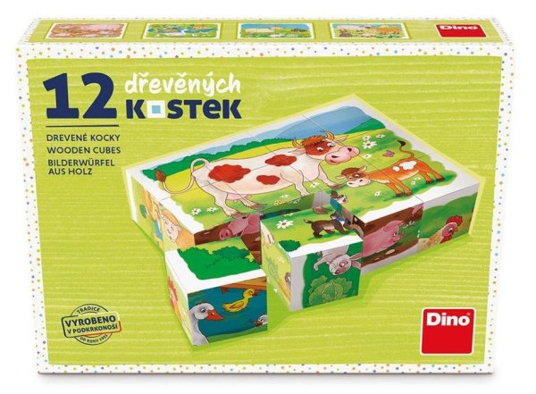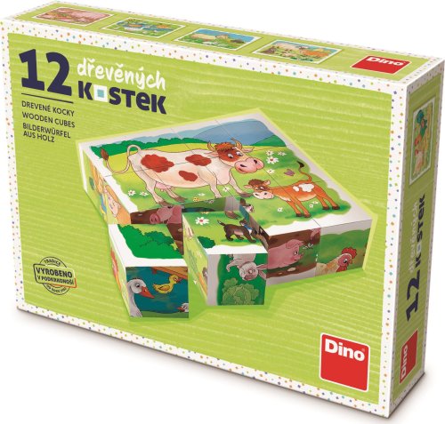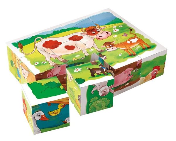 Kvalitní dřevěné kostky, ze kterých složíte 6 obrázků s dětskými motivy.