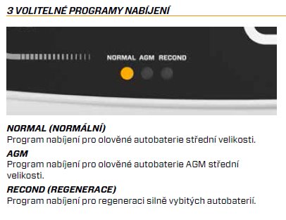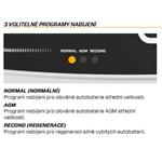 "AGM" pro baterie AGM a dále režim "RECOND"určený pro regeneraci silně