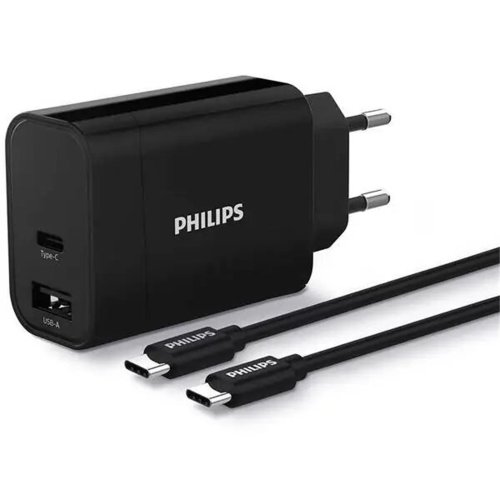 Nabíječka duální nástenná Philips DLP5321NB/12 + 1m kabel USBC na USBC, černý