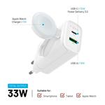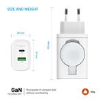 Díky technologii GaN má adaptér i přes tenké tělo dostatečný výkon – až 33 W. Najdete na něm jeden USB-A port a jeden USB-C port s podporou Power Delivery 3.0, svá zařízení tak můžete nabíjet rychle a s minimálním zahříváním. Samozřejmostí je ochrana proti přepětí, přetížení a zkratu.