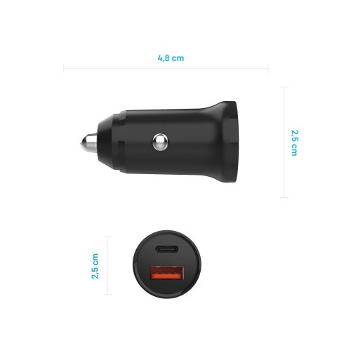 Nabíječku jednoduše zapojíte do zásuvky zapalovače. Je vybavená 2 porty – rychlý USB-C port s výkonem a podporou Power Delivery 3.0 a USB-A port. Nabíjíte klidně hned 2 zařízení současně. Nabíječka rozpozná energii, kterou potřebuje připojený mobil, tablet nebo třeba GPS.