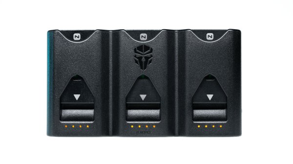 Nabíječka Jupio Pr1me Gear Tri-Charge zvládne nabít až 3 dobíjecí baterie k fotoaparátu najednou. Nabíječku lze napájet přes USB port třeba z počítače, notebooku nebo autonabíječky. Využijete k tomu jakoukoliv USB-C nebo PD nabíječku. O stavu nabíjení vás informují 4 LED oranžové diody.