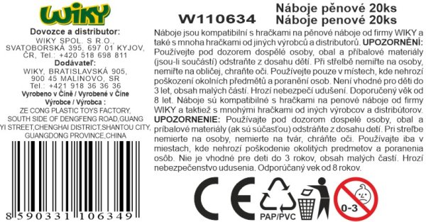 Pěnové náboje s pevným hrotem. Tyto pěnové náboje jsou kompatibilní s pistolemi od dalších výrobců. Balení obsahuje 20 ks.