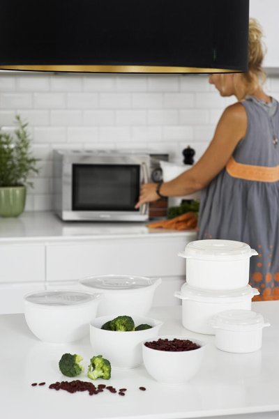 Vhodný do mrazničky, ledničky a mikrovlnné trouby. Teplotní rozpětí od - 20 °C do + 100 °C.