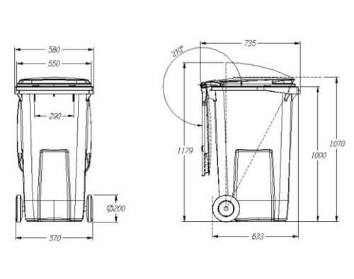 objem: 240 l nosnost: 96 kg průměr kola: 200/250 mm materiál: plast barva: černá