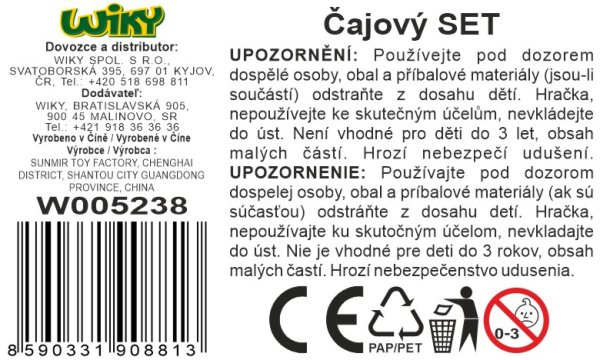 4 šálky 4 lžičky 2 talířky cukřenka konvička Doporučený věk: od 3 let