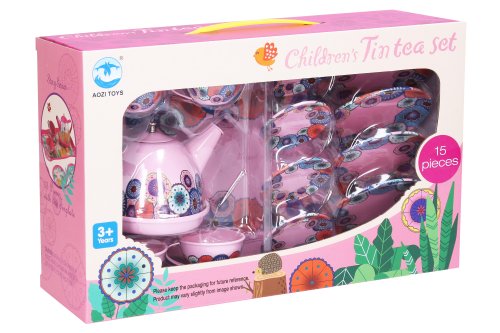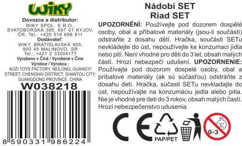 Nádobí sada 15ks. Obsahuje tác 24cm, konvici 11cm, 2x hrneček 6cm, 4x talířek 5,5cm, 4x talířek 7cm.