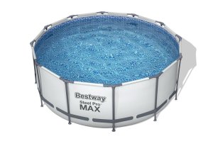 Není nic lepší než mít svůj vlastní bazén na zahradě! Kulatý tvar znamená snadnou montáž, lepší stabilitu a méně zabraného místa. Korozivzdorný ocelový rám je vybaven naším systémem FrameLink System ™ pro pevné a bezpečné spojení rámu. Stěny bazénu Steel Pro MAX jsou zkonstruovány z materiálu DuraPlus™, který dosahuje vynikající pevnosti a trvanlivosti díky jádru z polyesterové síťoviny, kolem kterého jsou dvě vrstvy vysoce odolného PVC. Realistický tisk se vzorem Prismatic Stone dává vnitřní straně pláště bazénu krásný vzhled, efekt textury a sytě modrou barvu. Vestavěný regulovatelný vypouštěcí ventil lze připojit k zahradní hadici (pomocí adaptéru, který je součástí balení) a bazén snadno vypustit. Součástí dodávky je kartušová filtrace s průtokem vody 2 006 l. Doporučený objem vody: 10 250 l (90 %). Rozměr bazénu: 366 x 122 cm. Obsahuje: bazén, kartušová filtrace (58383), bezpečnostní schůdky (58331), plachta (58037), kompatibilní filtrační vložka typu II (58094).