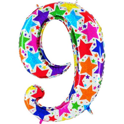 Nafukovací balónek číslo 9 barevné hvězdičky 102cm extra velký - Grabo