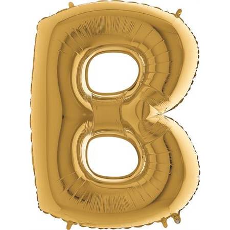 Zlatý balónek písmeno B. Balónek je vyrobený z pevné fólie.