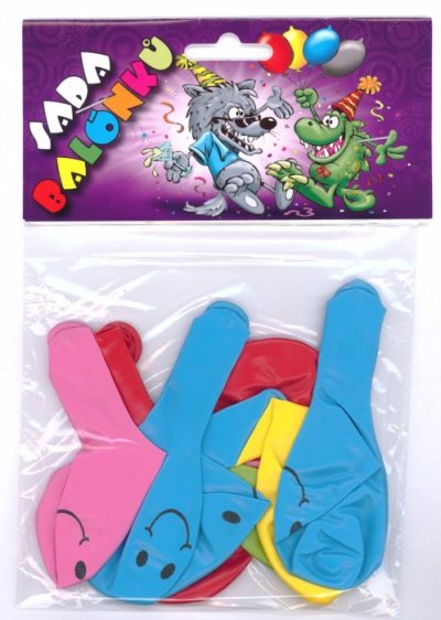 Balení obsahuje 9 kusy různobarevných nafukovacích balónků s potiskem smajlíka.