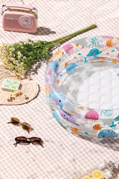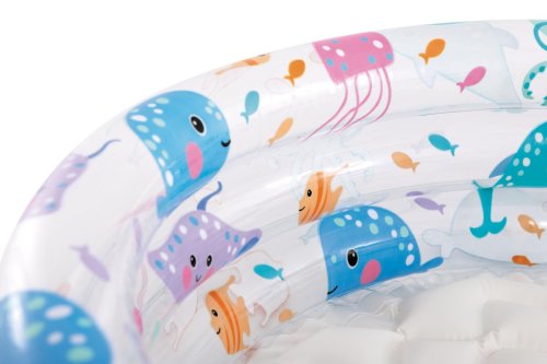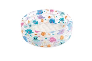 Dětský nafukovací bazén. Bazén má tři komory. Nafukovací bazének můžete velmi jednoduše nafouknout a postavit téměř kdekoli. Kapacita vody (28l) do 14 cm výšky stěny. Rozměr 61 x 22 cm. Vhodné od 1 do 3 let.