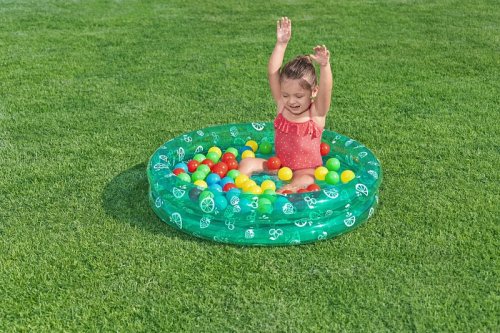Bestway® Nafukovací bazén Splash & Play™ s 50 hracími míčky. Tato nafukovací hračka 2 v 1 přináší zábavu s míčky a bazén přímo do vašeho obývacího pokoje nebo na dvorek! Nafukovací stěny poskytují stabilní oporu, zatímco vaše ratolesti prozkoumávají bazén. Když je dobré počasí, můžete Splash & Play™ naplnit vodou a použít jej jako brouzdaliště. Bazén se snadno nafukuje a vyfukuje, takže jej lze rychle postavit a uložit. Napomáhá k rozvoji jemné motoriky. Pomáhá dítěti rozvíjet koordinaci rukou a oka, stejně jako základní úroveň zručnosti. Také podporuje sebedůvěru dítěte pomoci interaktivní hry. Vyrobeno z kvalitního a odolného PVC. Bazén má 2 vzduchové komory. Včetně opravné záplaty. Max kapacita: 73 l Nafouknutá velikost bazénu: Ø 91x20 cm. Nenafouknutá velikost bazénu: 83 x 83 cm. Rozměry balení: 30 x 33 x 13 cm. Používejte pouze pod dohledem dospělé osoby. Věk: 2+