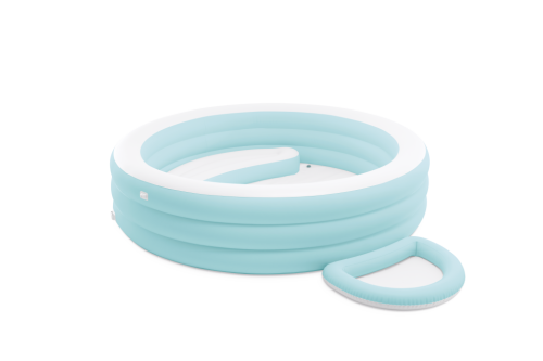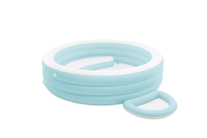 Nafukovací bazén Swim Center™ Canopy Lounge je navržen jako pohodlný a praktický doplněk pro letní osvěžení dětí i dospělých. Bazén je kulatého tvaru a jeho stěny jsou tvořeny třemi nafukovacími kruhy v jemné světle modré barvě, která působí svěže a příjemně. Uvnitř bazénu je integrovaná nafukovací sedačka, která je dostatečně prostorná, aby si na ni uživatel mohl pohodlně sednout a relaxovat. Sedačka je barevně sladěná s vnějším obvodem bazénu, což podtrhuje celkový design produktu.