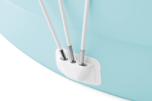 Součástí bazénu je také nafukovací vana na nohy, která nabízí další komfortní prvek pro uživatele, a zvyšuje tak pohodlí během pobytu ve vodě. Bazén je vybaven odnímatelnou stříškou, která poskytuje účinnou ochranu před slunečními paprsky. Stříška je vyrobena z lehkého materiálu bílé barvy a disponuje faktorem ochrany UPF 50+, což výrazně snižuje riziko spálení a přehřátí. Konstrukce stříšky je stabilní díky kovovým tyčkám, které jsou pevně uchyceny do speciálních držáků na obvodu bazénu, a dále ji lze jednoduše připevnit či odejmout pomocí poutkových systémů a šňůrek.