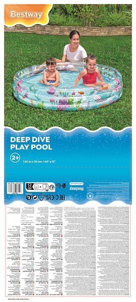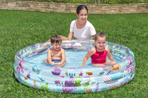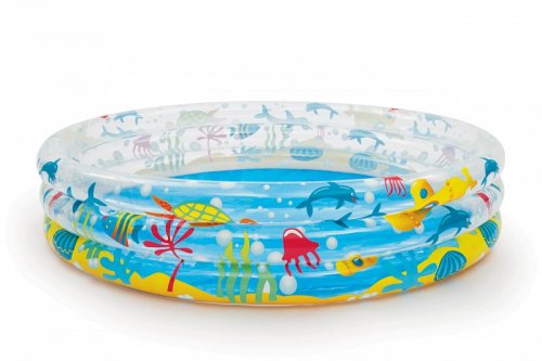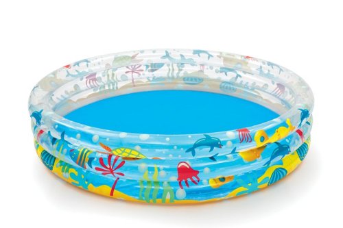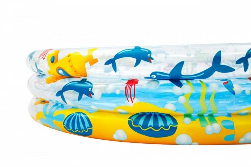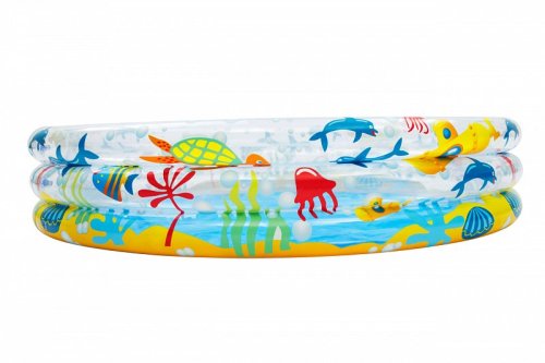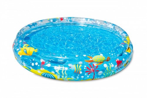 V horkých letních dnech není pro vaše nejmenší lepší osvěžení, než v nafukovacím bazénku! Bazének je vhodný jako brouzdaliště. Tříkomorový nafukovací bazén s motivy mořského světa. Bazének je vyroben z kvalitního PVC o síle 0,19 mm. Obsah: 1x bazén, 1x záplata pro opravy. Assort je náhodný mix modelů. Výběr nelze ovlivnit. Rozměry nafouknutého bazénku:152 x 30 cm. Rozměry nenafouknutého bazénku: 140 x 140 cm. Rozměry balení: 45 x 30 x 3,3 cm. Objem bazénku: 282 l. Používejte pouze pod dohledem dospělé osoby. Věk: 2+