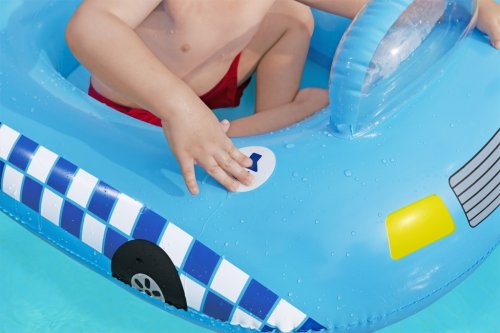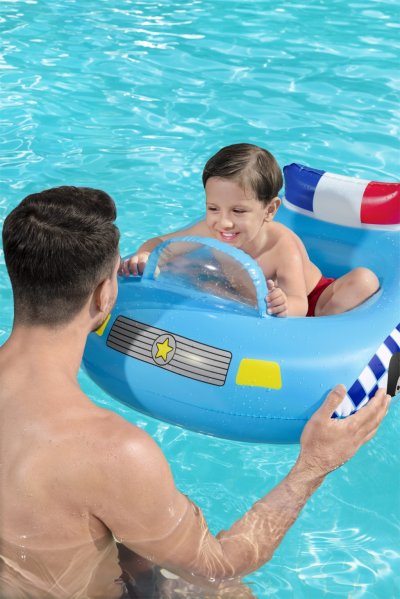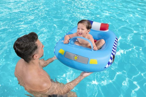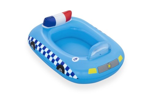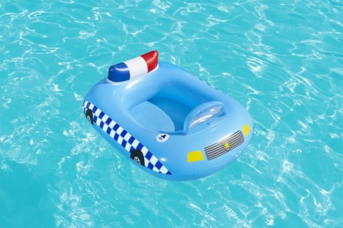 Nafukovací člun v designu policejního auta o velikosti 97×74 cm pro děti od 3 let. Zabudovaný zvuk sirény, baterie nelze vyměnit.