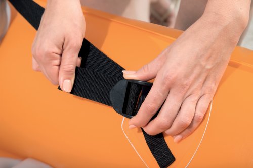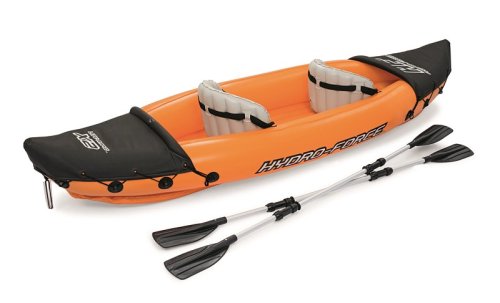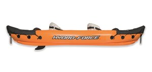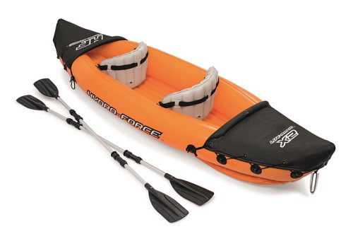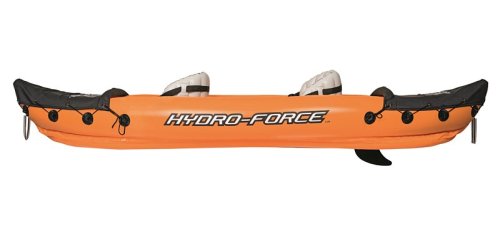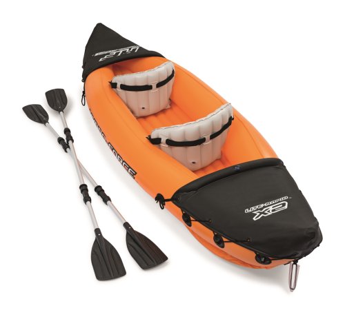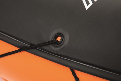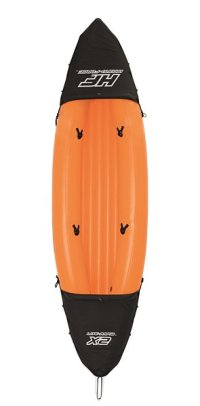 Modrý kajak X2 přímo vyzývá k dobrodružství! Kajak je vyroben z odolného a testovaného vinylu o síle 0,57 mm. Je vybaven rychloupínacími ventily, bezpečnostním ventilem, vypouštěcím ventilem a lanem s vestavěnými průchodkami po obvodu. Tvar konstrukce zabraňuje vstupu vody do kokpitu, který je vybaven nafukovacími sedadly. Člun je vybaven jednou odnímatelnou středovou ploutví, která pomáhá udržet směr. Jistě oceníte i další praktické detaily, jako napřílad pevné rukojeti a 2x oboustranná dvouplášťová vesla z hliníku (218 cm). Opravná sada je součástí balení. Maximální nosnost: 160 kg (2 pasažéři). Váha: 13,9 kg. Rozměr: 321 x 88 x 42 cm.