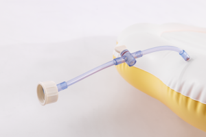 Bazén je vybaven speciální fontánkou, která vzniká připojením zahradní hadice k plastovému připojovacímu ventilu umístěnému na bílém okraji bazénu. Díky této funkci se z otvorů po obvodu bazénu vytváří jemná sprška vody, která děti osvěží a zároveň umožňuje bezpečné a zábavné hraní. Hadicový adaptér je průhledný s bílým zakončením a snadno se nasazuje i sundává.