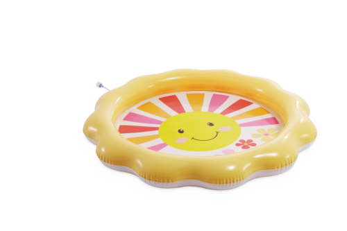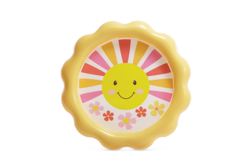 Nafukovací dětský bazén ve tvaru sluníčka představuje praktickou a zábavnou letní hračku určenou pro děti od dvou let. Bazén má jemně zaoblený tvar s vlnitým okrajem, který připomíná paprsky slunce, a je zhotoven z kvalitního nafukovacího materiálu v žluté a bílé barvě. Uvnitř bazénu je barevná potisková plocha se stylizovaným usměvavým sluncem a květinami, což přispívá k jeho přitažlivému a hravému vzhledu.