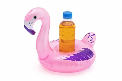 Nafukovací plovací držák na pití ve dvou atraktivních variantách - plameňák a páv. Ideální do bazénu či vířivky. Rozměr plaměňák 26,5 x 24 cm, páv 34,5 x 31 cm