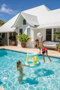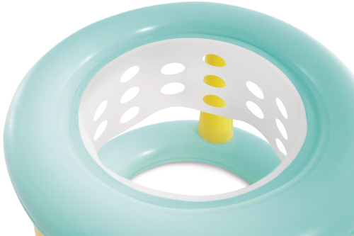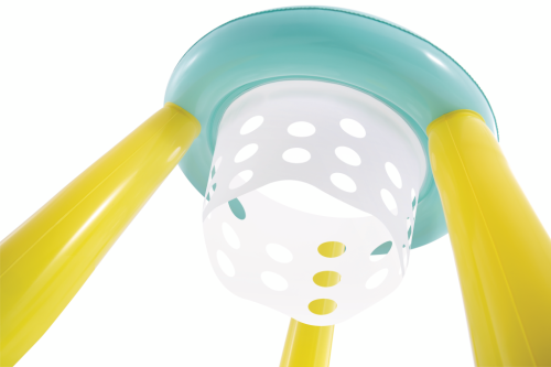 Nafukovací hra Velký basketbalový koš je ideální zábavou pro děti od 6 let, která zpestří každé koupání v bazénu. Tento produkt je vyroben z odolného PVC materiálu, který je příjemný na dotek a zajišťuje dlouhou životnost i při častém používání ve vodě. Basketbalový koš je navržen tak, aby volně plaval na hladině bazénu a umožňoval pohodlnou hru přímo ve vodě. Jeho konstrukce je tvořena dvěma nafukovacími kruhy v pastelově modré barvě, mezi kterými jsou tři pevné žluté sloupky, které zajišťují stabilitu a pevnost.