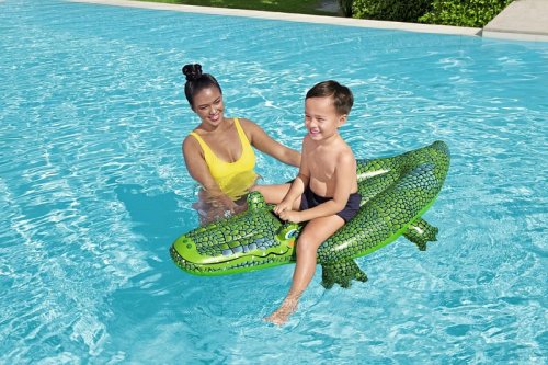 Velký nafukovací krokodýl do vody je vhodný k moři, rybníku i do bazénu. Realistický potisk. Stabilní konstrukce a robustní plastové rukojeti vám pomohou udržet větší stabilitu. Dvoukomorový systém s bezpečnostními ventily. V balení naleznete 1 ks opravné záplaty. Rozměr: 152 x 71 cm. Věk: 3+ (určeno pro 1 dítě). Max. nosnost: 45 kg. Použití pouze pod dohledem dospělé osoby a ve vodě, kde dítě dosáhne na dno.