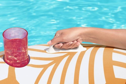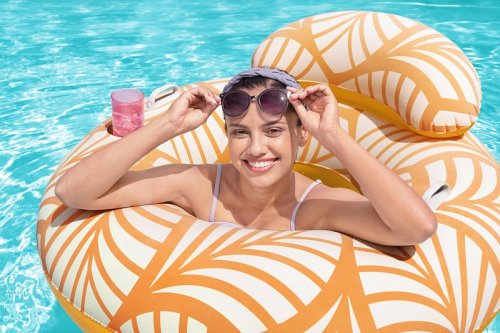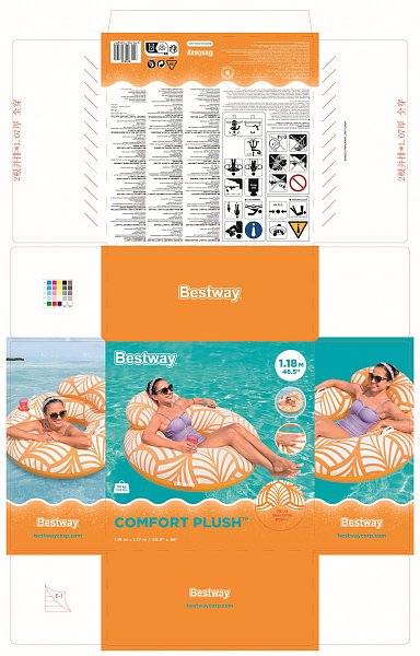 Bestway® Nafukovací kruh s opěrkou hlavy Comfort Plush Deluxe™. Luxusní a sametový povrch. Vyrobený z velmi kvalitního a odolného PVC velurového materiálu a disponuje průměrem 118 cm. Kruh Bestway je vybaven opěradlem, odolnými madly a prostorem na láhev nebo plechovku s vaším oblíbeným pitím. Barva materiálu se po vložení do vody rozjasní a zesílí. Včetně opravné záplaty. Nafouknutá velikost kruhu: Ø 104 x 48 cm. Nenafouknutá velikost kruhu: Ø 118. Rozměry balení: 24 x 24 x 11 cm. Určeno pro 1 osobu. Maximální nosnost: 90 kg. Věk: 14+