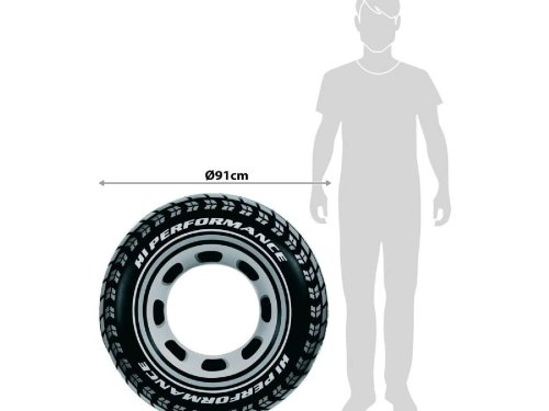 Nafukovací kruh pneumatika je plavecká pomůcka pro plavání a vodní hrátky. Nafukovací plavací kruh vzor pneumatiky. Tloušťka materiálu 0,23 mm, průměr kruhu 91 cm. Maximální zatížení je 60 kg. Vhodné pro děti od 9 let.