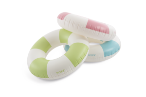 Nafukovací kruh pruhovaný Coastal Cabana je ideálním doplňkem pro letní radovánky ve vodě, určený pro děti od 9 let. Tento kruh má průměr 91 cm, což zajišťuje dostatečnou velikost pro pohodlné použití jak v bazénech, tak při pobytu u moře. Díky svému designu v pruhovaných pastelových barvách – modré, zelené a růžové – působí svěže a stylově, což je podtrženo jemným leskem materiálu.