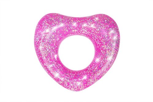 Nafukovací plážový kruh plný třpytek. Barevné třpytky v kruhu se na slunci třpytí a vytvářejí atraktivní efekty. Kruh je v provedení růžového srdce nebo zlaté hvězdy. Vyrobeno z kvalitního a odolného vinylu. Průměr: 91 cm. Rozměr balení: 33 x 19 x 1,5 cm. Věk: 10+. Používejte pouze pod dohledem dospělé osoby.