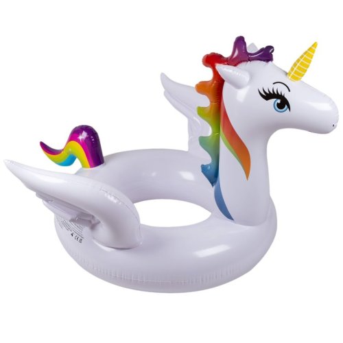 Jedinečný tvar jednorožce, duhové prvky a veselý výraz dělají z tohoto kruhu naprostou plážovou senzaci. A navíc – vypadá skvěle na fotkách!
